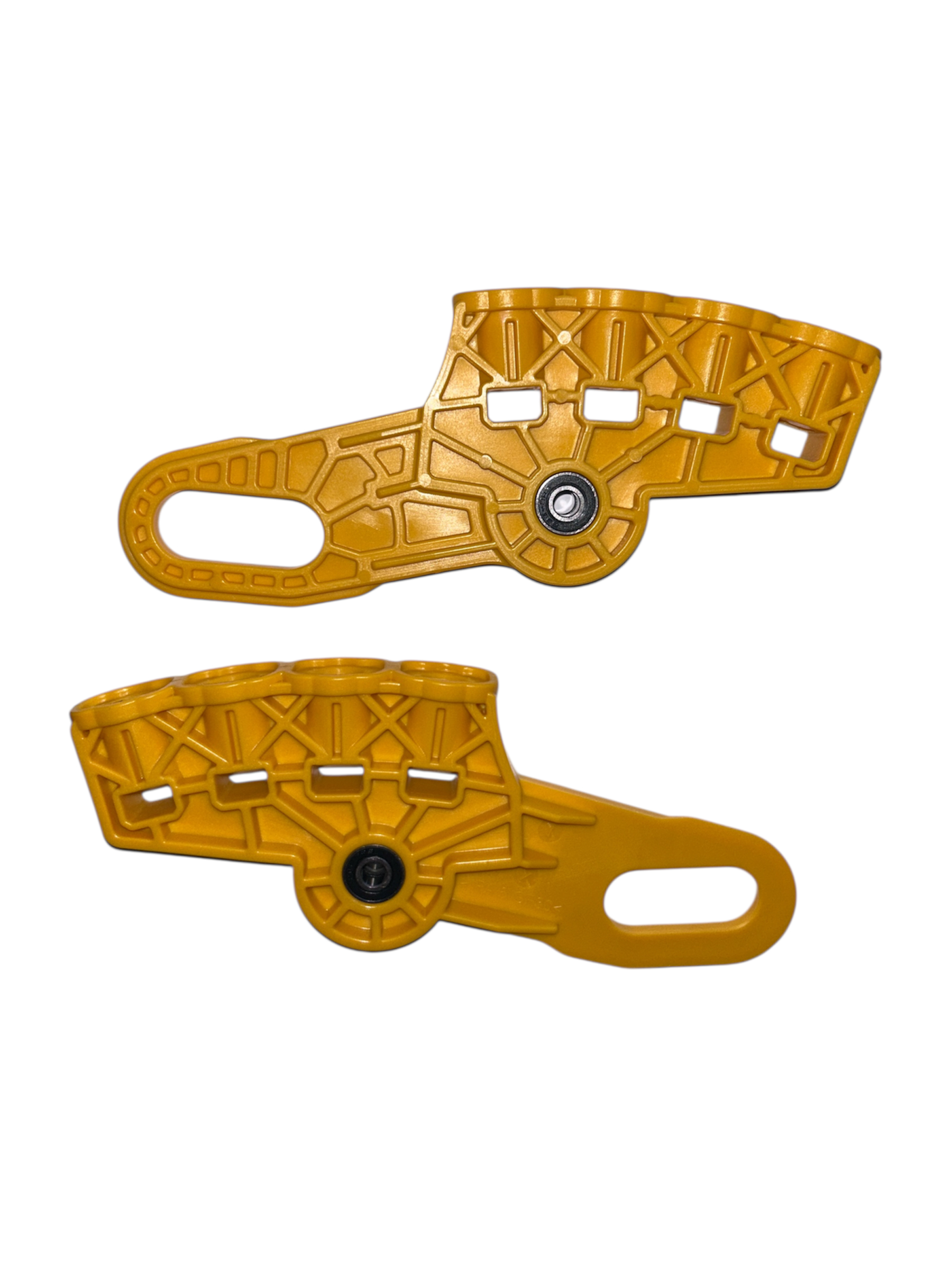 I bracci portarebbi sono il punto di maggiore stress meccanico nella testa dell'abbacchiatore. Il kit 165TK6 è il ricambio specifico e necessario per rimettere in sesto il meccanismo quando i vecchi bracci mostrano segni di usura, crepe, o quando i cuscinetti interni iniziano a usurarsi, causando giochi eccessivi e rumori anomali.