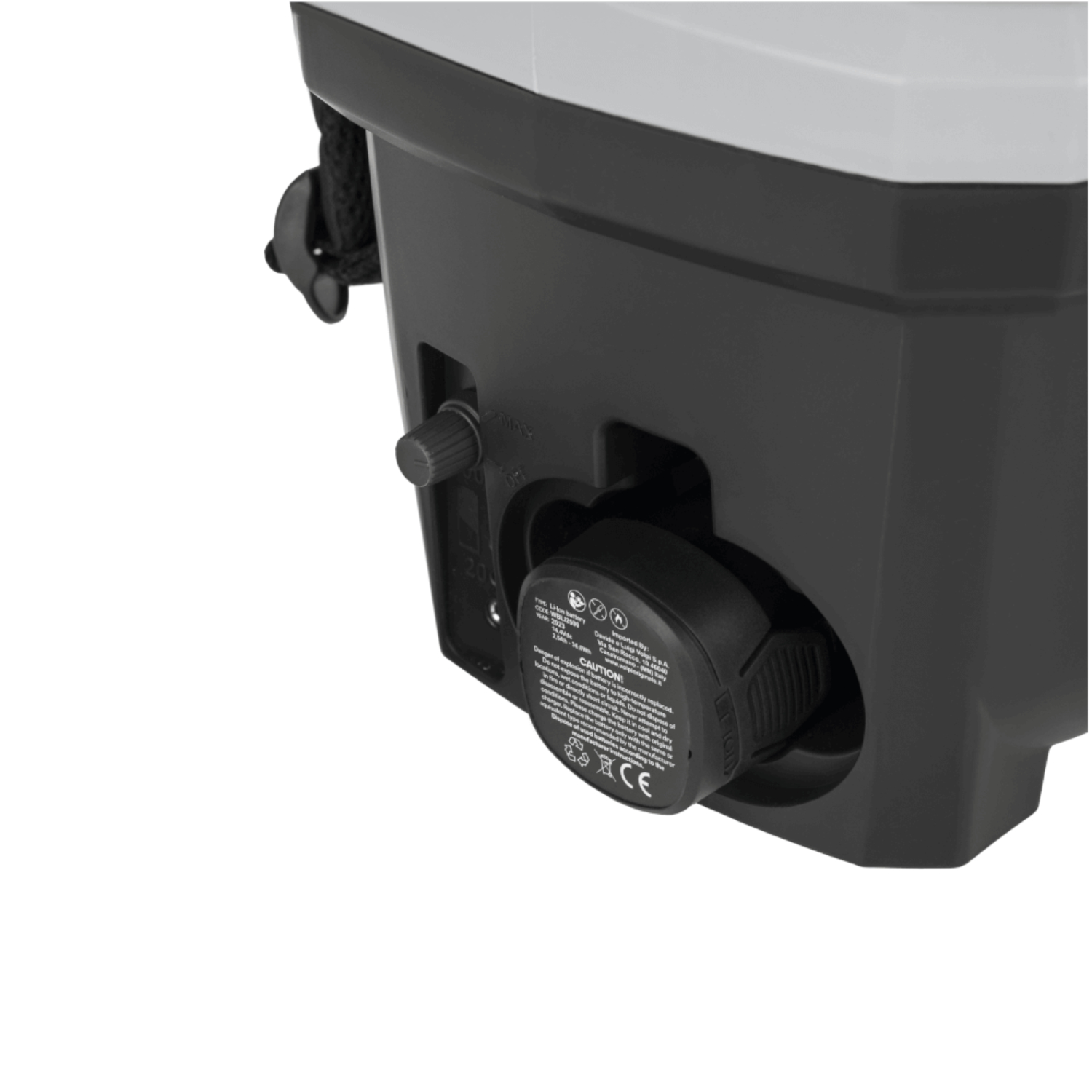 Progettato per facilitare le azioni di irrorazione, questo sprayer è dotato di una pompa a pistoni in acciaio inox ad alta pressione, in grado di raggiungere 8BAR; di un serbatoio da 16 litri e viene fornito con 2x V.BATTERY da 14.4V, batteria al litio ricaricabile multi-utensile.