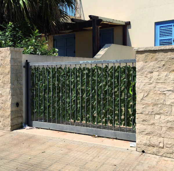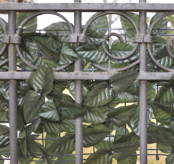 Siepe decorativa con foglie in Poliestere fissate su un supporto in PVC, stabilizzato UV.