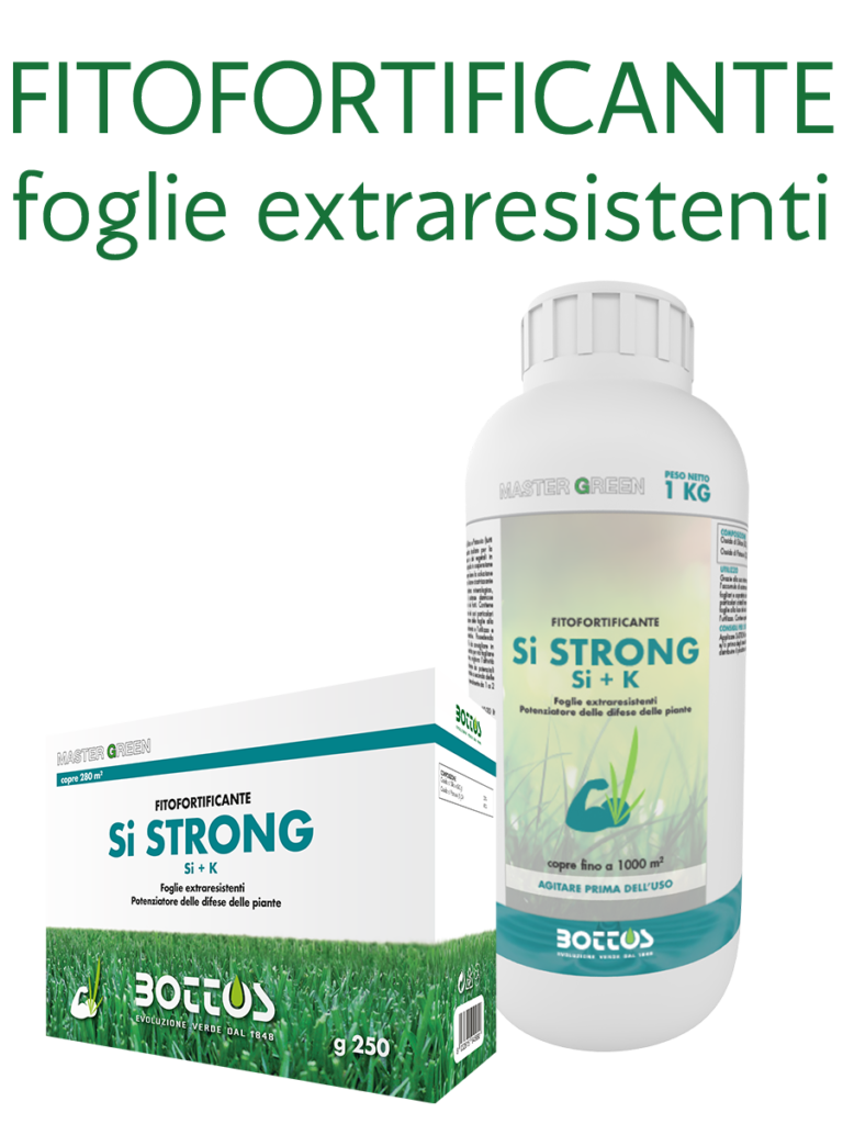 Il fertilizzante Bottos SI Strong contiene macroelementi e silicio per migliorare la crescita e la resistenza del tappeto erboso.